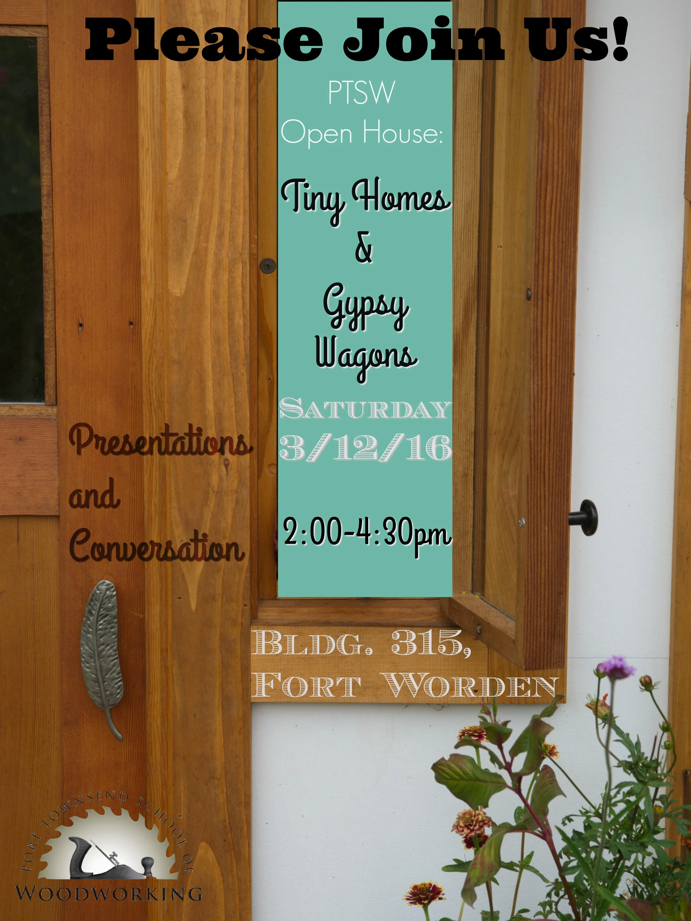 Join us for an Open House on March 12th (note the new date). We'll be talking Tiny Homes & Gypsy Wagons, with presentations from Jim Tolpin and Steven Habersetzer, and no doubt some great conversations!