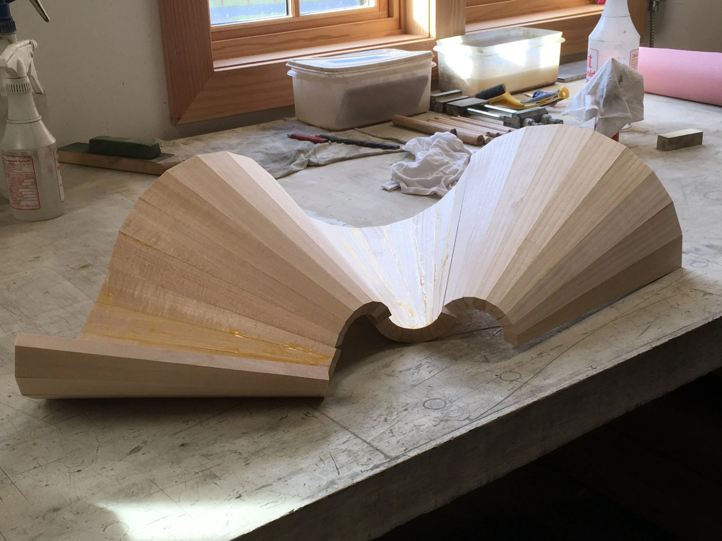In this two-week class, students will practice and play with three different methods for creating strong and elegant curves in wood: bent laminations, brick-lay laminations, and coopering.