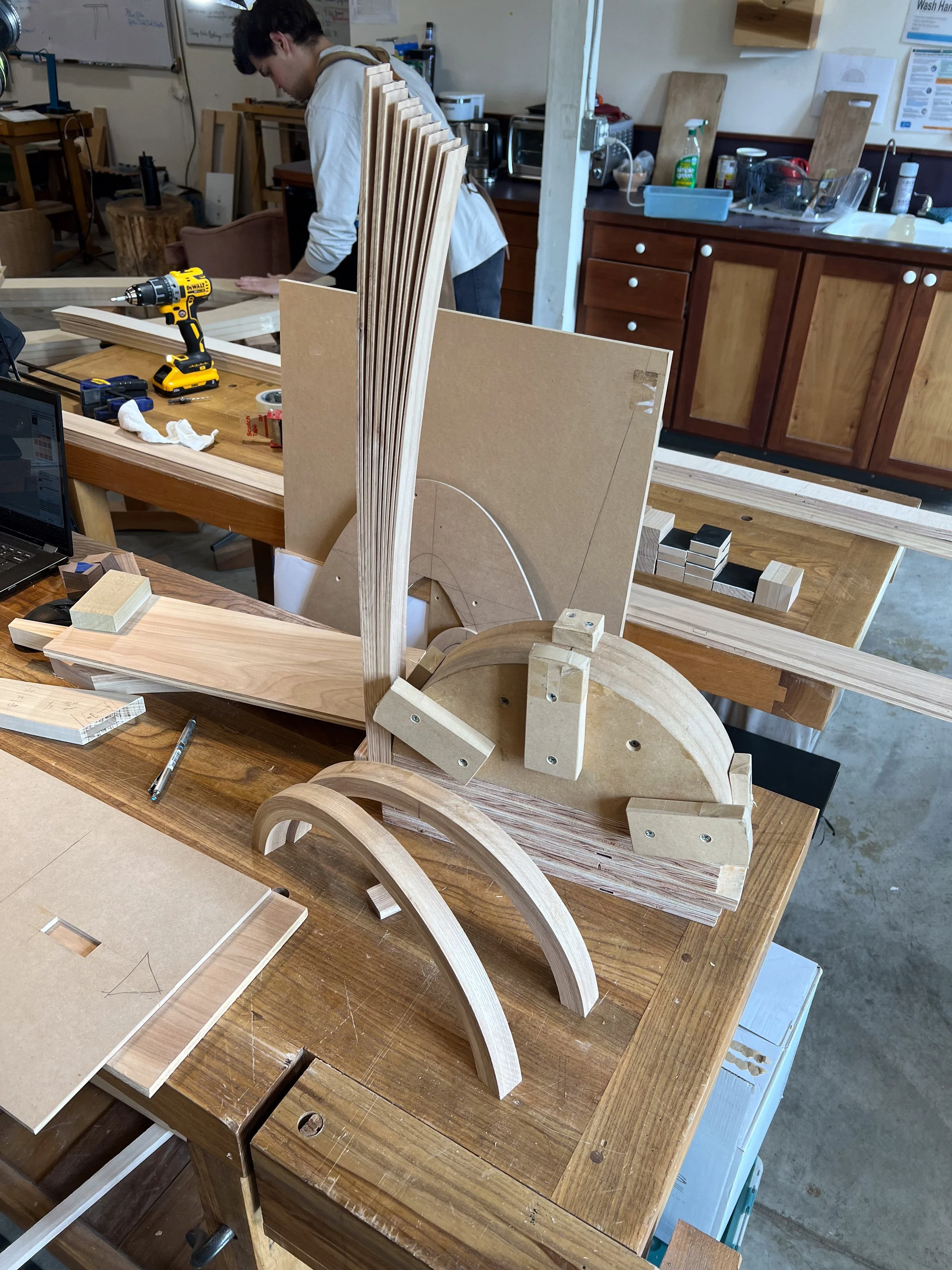 The first week will focus on demonstrations and hands-on experimentation with each method. In the second week, students will be given free rein to take a deeper dive into one of the techniques and incubate ideas or develop parts for future projects. Students will learn the characteristics of each method, and will be assisted through the steps of conceptualizing, designing, and constructing curved parts with each technique. After taking this class, students will be more confident about curves and will have developed a greater ability and comfort in incorporating curves into their work.