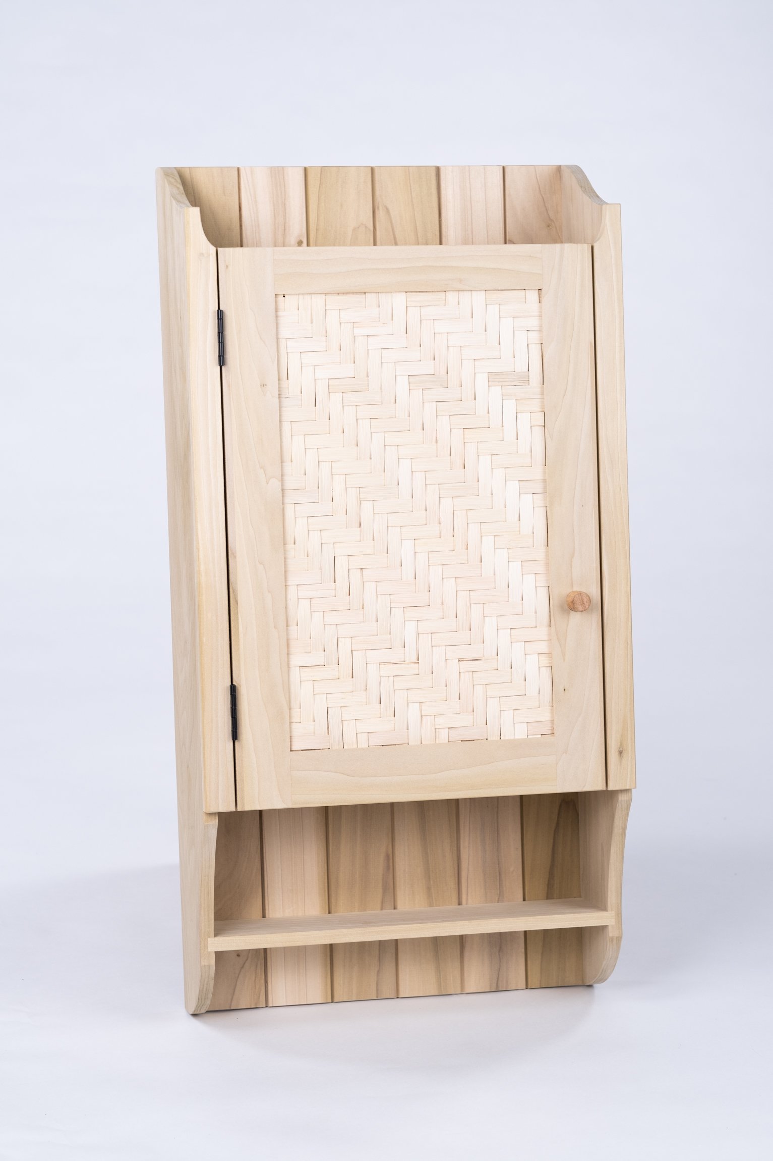 In this five-day workshop, you’ll build a small wall-hanging cabinet made from ash that combines clean lines, thoughtful proportions, and practical storage. The cabinet features a hinged frame-and-panel door with a woven ash splint panel, an interior shelf with an open upper compartment, and a small exterior shelf below the door. The design is well-suited for use as a small liquor cabinet, tea cabinet, or for storing everyday household items such as mugs, glassware, or personal objects.