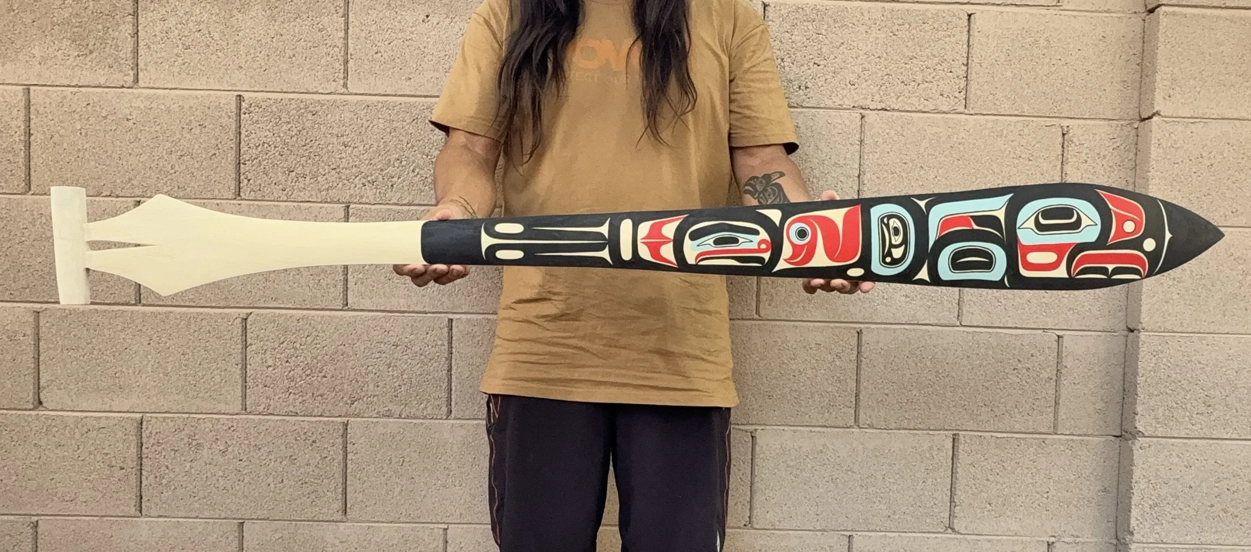 In this five-day workshop, you will learn to carve, sand, paint and oil a paddle made of yellow cedar. All paddles will be fully functional and will range from three to five feet in length depending on personal preference. James will include demonstrations on the traditional use of tools in addition to carving instruction. Students will learn about both traditional and contemporary pigments used to adorn the paddles, employing Northwest Coast formline drawing and painting techniques. As formline design can be quite complex and time consuming, James will develop a formline design that can be transferred and individually painted on your paddle. This course will cover a broad range of techniques and skills, and it is well suited to both complete beginners and advanced carvers.
